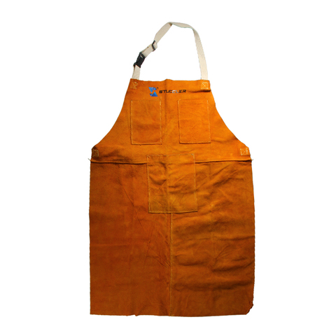 STUCCLER, delantal de trabajo de cuero resistente, piel de vaca dividida Extra gruesa con 3 bolsillos para soldadura y fabricación de joyas